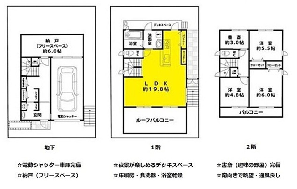 ■南向き、眺望良好、床暖房、書斎有